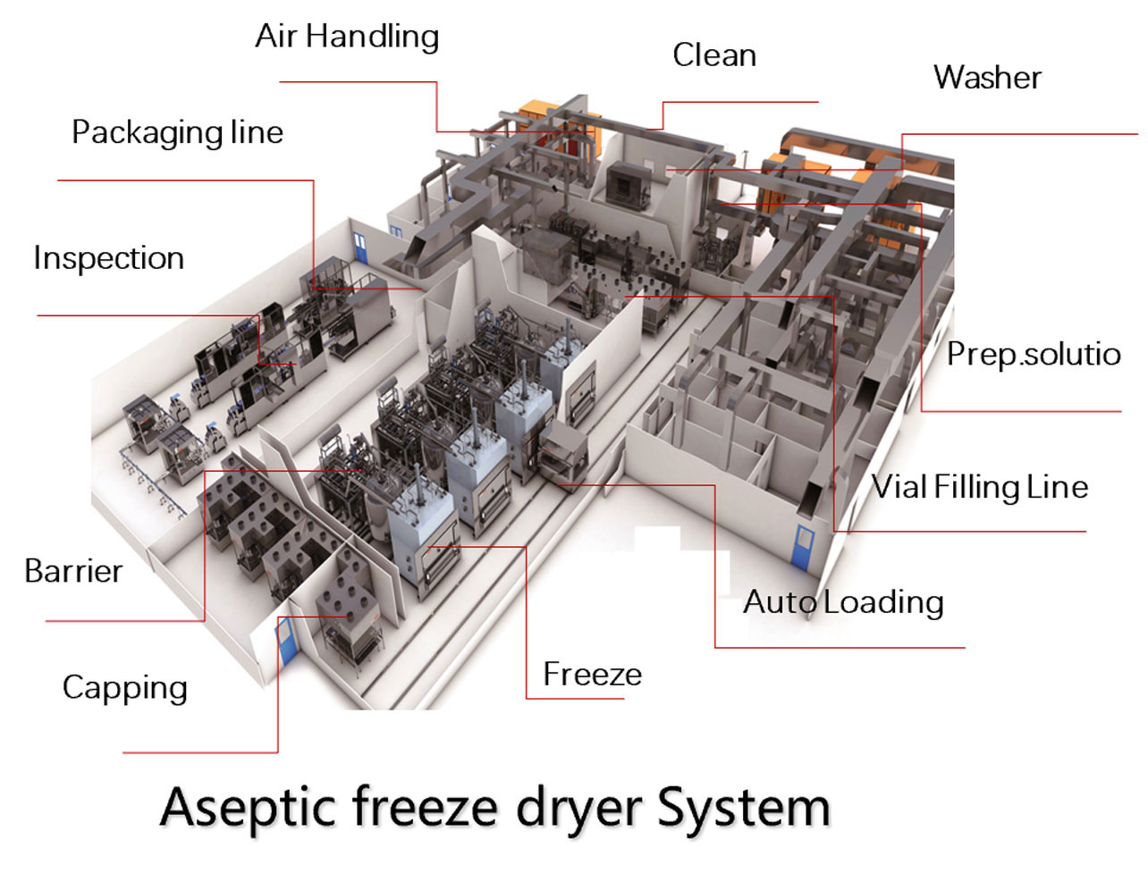 Drug product solution for vial/ampoule/PFS/cartridge/ injection pen (water system , preparation solution, washer, tunnel, filler ,capper, auto& unloading, isolator, lyophilizer, inspection machine, labeling ,package machine etc.)